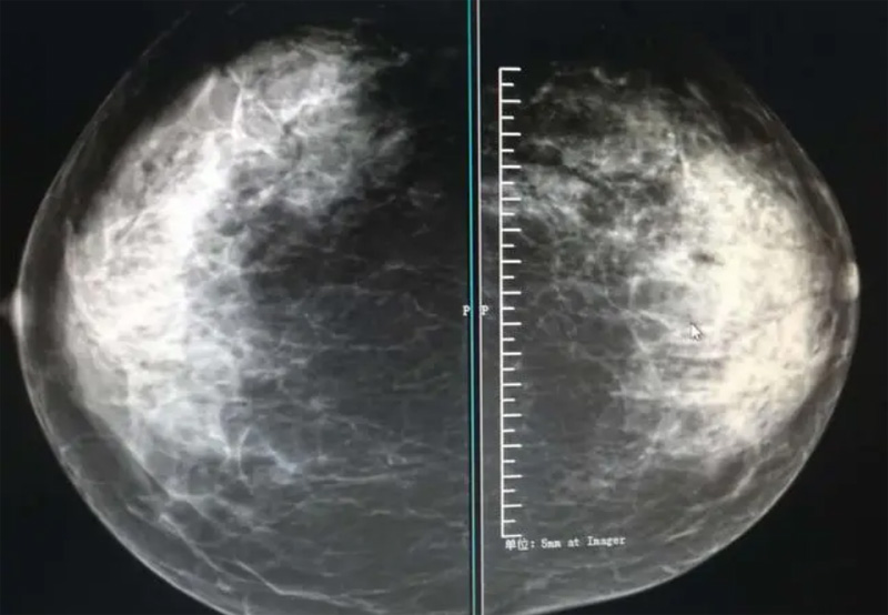 5類:高度懷疑惡性,臨床應(yīng)采取適當(dāng)措施(幾乎肯定的惡性)。這一類病變有高度的惡性可能性。檢出惡性率的可能性大于等于95%。形態(tài)不規(guī)則星芒狀邊緣的高密度腫塊、段樣和線樣分布的細小線樣和分支狀鈣化、不規(guī)則星芒狀邊緣腫塊伴多形性鈣化均應(yīng)歸在這一類中。