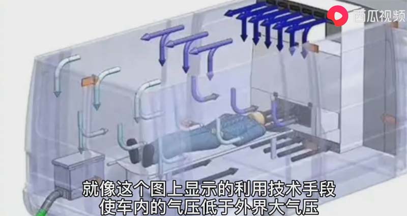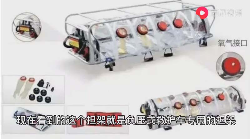在車輛行駛狀態(tài)下通過空氣的自由流動(dòng),只能把車外的氣流流向車內(nèi),而且車內(nèi)的氣體通過無毒化處理后排出車外。像這種屬于人傳人的傳染病可以避免更多的人被傳染。在運(yùn)轉(zhuǎn)病人的時(shí)候也可以最大限度的隔離病人和醫(yī)護(hù)人員。同時(shí)可以使醫(yī)患互相感染。現(xiàn)在看到這個(gè)擔(dān)架就是負(fù)壓救護(hù)車的專用擔(dān)架。