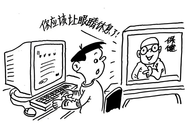 (5)不能長時間盯著電腦顯示器,適當(dāng)?shù)男菹ⅲ?小時休息10分鐘左右,不要連續(xù)使用超過4個小時。休息時候甩甩手腕,走一下路,遠(yuǎn)眺一下遠(yuǎn)方。