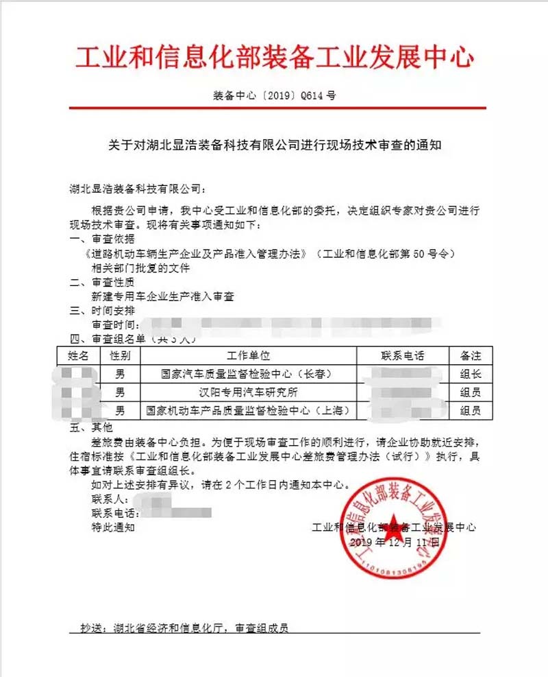 2019年12月19日湖北省顯浩裝備科技有限公司迎來(lái)了工信部委派的三位技術(shù)審查專家,三位專家對(duì)我司申請(qǐng)的醫(yī)療車,獻(xiàn)血車,負(fù)壓救護(hù)車,等專用車企業(yè)準(zhǔn)入進(jìn)行現(xiàn)場(chǎng)技術(shù)審查。