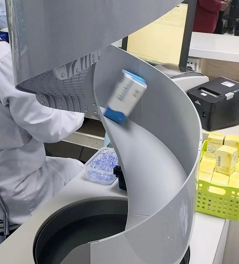 隨著人工智能的發(fā)展,以質(zhì)量為核心、以病人為中心”的服務(wù)理念。提高醫(yī)療服務(wù)質(zhì)量,改善群眾就醫(yī)體驗(yàn),醫(yī)院都紛紛上線智慧藥房。發(fā)藥機(jī)投入使用讓病患享受到更加便捷的藥學(xué)服務(wù)。發(fā)藥機(jī)從外形看,就像是大型自動(dòng)售貨機(jī),解決了人工發(fā)藥取藥調(diào)配差錯(cuò)率高、沒有過程記錄環(huán)節(jié)、患者等待時(shí)間長等缺點(diǎn),緩解了高峰期配藥壓力。發(fā)藥機(jī)系統(tǒng)還會(huì)自動(dòng)鎖定過期藥品功能強(qiáng)大,發(fā)藥機(jī)內(nèi)部溫度恒溫,有藥品缺藥的提示功能,系統(tǒng)就會(huì)按照處方的內(nèi)容自動(dòng)調(diào)配藥品,可以及時(shí)的補(bǔ)充藥品。實(shí)現(xiàn)實(shí)時(shí)監(jiān)控。這樣讓病患可以得到用藥需求。藥品充足就不會(huì)讓病人久等。最后把調(diào)配好的藥品通過傳輸帶輸送到發(fā)藥窗口。提高了效率將簡(jiǎn)單繁重機(jī)械重復(fù)式的工作交給智能發(fā)藥機(jī)完成。配合具有108存儲(chǔ)位的智能調(diào)配機(jī)和78種藥品拆零的分包機(jī),系統(tǒng)全天能達(dá)到6000張?zhí)幏教幚砟芰?,確實(shí)能緩解高峰期配藥壓力。真正實(shí)現(xiàn)了藥品調(diào)配的全流程智能化操作。為患者的用藥安全提供了有力的保障。