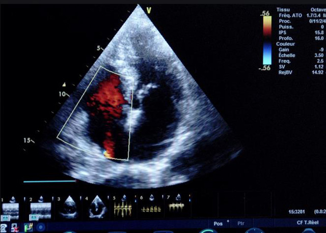 (三)檢測節(jié)段性室壁運動異常,研究冠心病患者左心室功能和分析局部室壁運動過程中。測量每一節(jié)段室壁的運動量,運動正常的節(jié)段彩帶色彩均勻?qū)哟喂庹_\動減弱的節(jié)段,厚度薄層次不全。心內(nèi)膜位移幅度和速度均減低。心內(nèi)膜位移幅度和速度甚低或難以測得。正常的多層彩帶消失,呈現(xiàn)紅色色帶,心內(nèi)膜位移呈負向,幅度和速度亦減低。急性心肌梗死的患者中可用于識別存活心肌抑或壞死心肌。多巴酚丁胺負荷試驗存活心肌的心內(nèi)膜位移幅度增高,停藥后即消失,而壞死心肌則無上述表現(xiàn)。實時檢查冠心病的節(jié)段性室壁運動異常,有時候通過發(fā)現(xiàn)局部心肌運動的時相異常,對于心臟傳導(dǎo)障礙的診斷也可能有幫助。