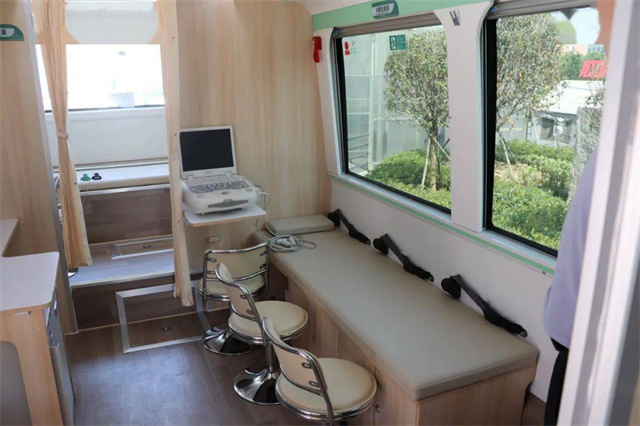 體檢車上都有這些檢查室?車廂里有男女彩超室,男女心電圖室,內(nèi)科、外科以及,骨密度、碳十三檢測室等,可以對血常規(guī)、肝膽功能,腎功能、空腹血糖、尿常規(guī),心電圖、肝膽胰脾B超等項目進行檢查。車上都有這些功能室?候診登記處可以在候診區(qū)等待就診,各類醫(yī)療用品和采樣冷藏柜也很完善。體檢車廂配置了全自動生化分析儀、全自動尿液分析儀、B超檢查室、心電圖檢查室等,可以進行前臺導(dǎo)診、采血、尿液檢查、實驗室化驗、DR拍攝、超聲心電檢查等項目,能夠為職工進行全面體檢,最快當(dāng)天即可出結(jié)果。
