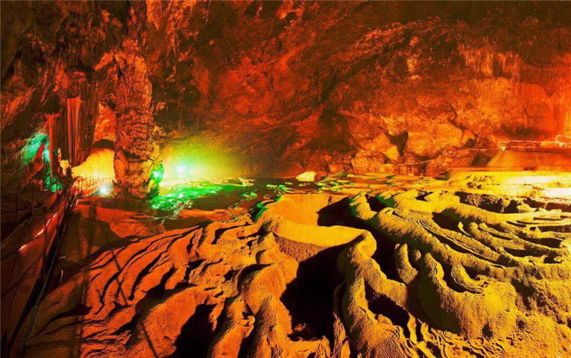 進(jìn)入黃仙洞后,只見(jiàn)洞內(nèi)奇石異景、百態(tài)紛呈,特別是2萬(wàn)平米的邊石池、形似梯田,是黃仙洞最具特色的地方,大家被眼前的景觀深深吸引,情不自禁折服于大自然的鬼斧神工。